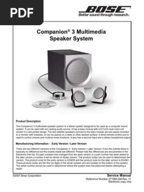 Bose 2.2 series ii direct reflecting speaker system service manual original. They both sound excellent when placed as the owners manual suggests. The two speakers connect directly to . For additional usage and troubleshooting information, refer to the complete companion® 2 owner's guide at www.bose.com/guides. Hilfreiche tipps, technische supportinformationen und produkthandbücher .